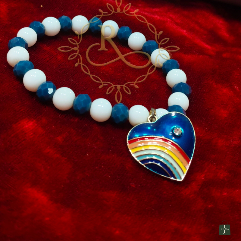 This delicate bracelet features sparkling crystal beads paired with smooth plain white beads, finished with a charming heart accent. this bracelet adds a touch of sweetness and elegance to any outfit.