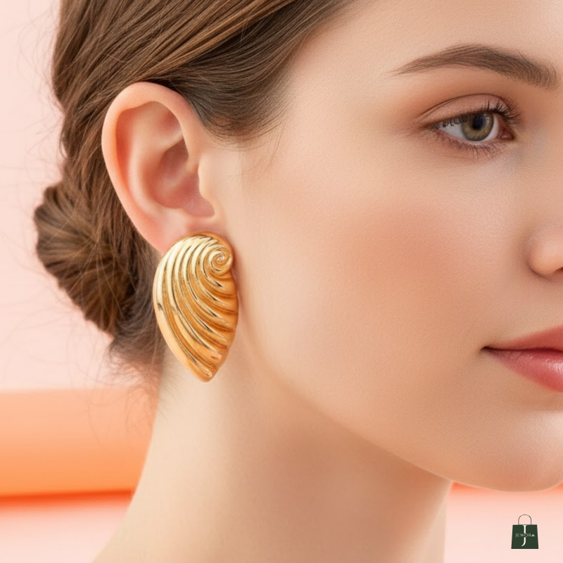 Add a refined touch to your jewellery collection with these stunning gold-plated swirl leaf stud earrings. Designed with smooth, flowing curves and a unique spiral detailing at the top, these earrings offer a modern yet timeless appeal. The high-polish gold finish gives them a premium shine, making them suitable for both everyday wear and festive outfits. Lightweight, comfortable, and skin-friendly, these earrings are an ideal accessory for women and girls who love minimalist yet stylish jewellery.