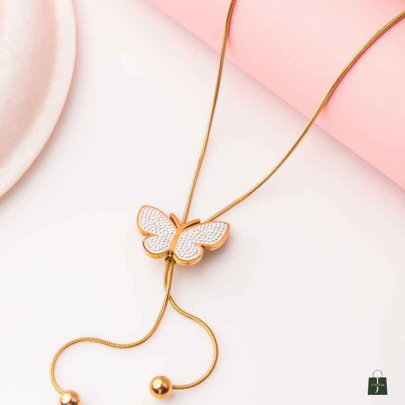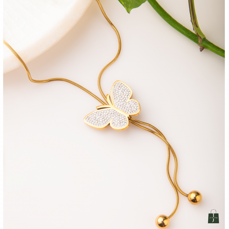The Butterfly Adjustable Anti-Tarnish Chain Add a touch of charm and elegance with. Featuring a delicate butterfly motif, this chain is designed with an adjustable length to suit every neckline and outfit. Its anti-tarnish coating ensures lasting shine and durability, making it a versatile accessory for both casual daywear and elegant evening looks.