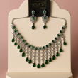 Elevate your festive and bridal look with this dazzling Cascade Glamour Necklace Set. Featuring vibrant ruby-red stones paired with sparkling American Diamonds, this masterpiece is crafted to exude pure luxury. The necklace is designed in an elegant fringe style with cascading pear-cut ruby drops, interlinked with shimmering white stones, creating a waterfall-like brilliance. The matching earrings echo the grandeur with ruby accents and intricate detailing, making them perfect for weddings, receptions, and high-society gatherings. This set blends modern craftsmanship with a regal finish, ensuring you turn heads wherever you go. Whether worn with a silk saree or a designer lehenga, this set becomes the ultimate statement piece in your jewelry collection.