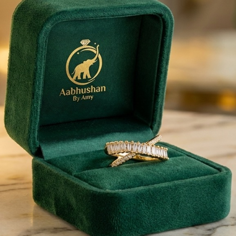 Crafted with shimmering baguette CZ stones in a graceful criss-cross silhouette, this ring captures light beautifully. A refined design that blends modern style with timeless sophistication.