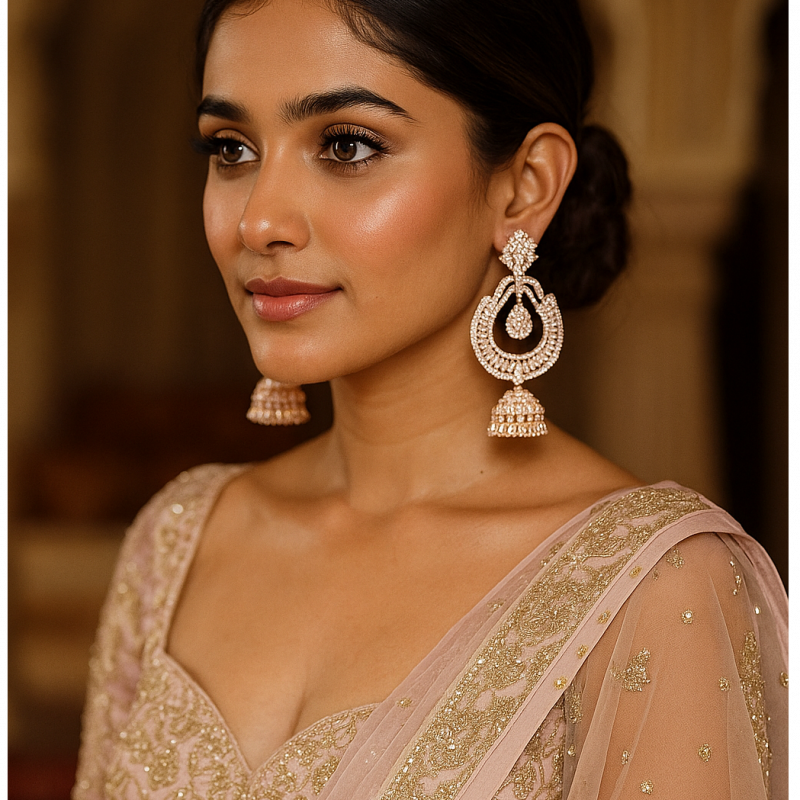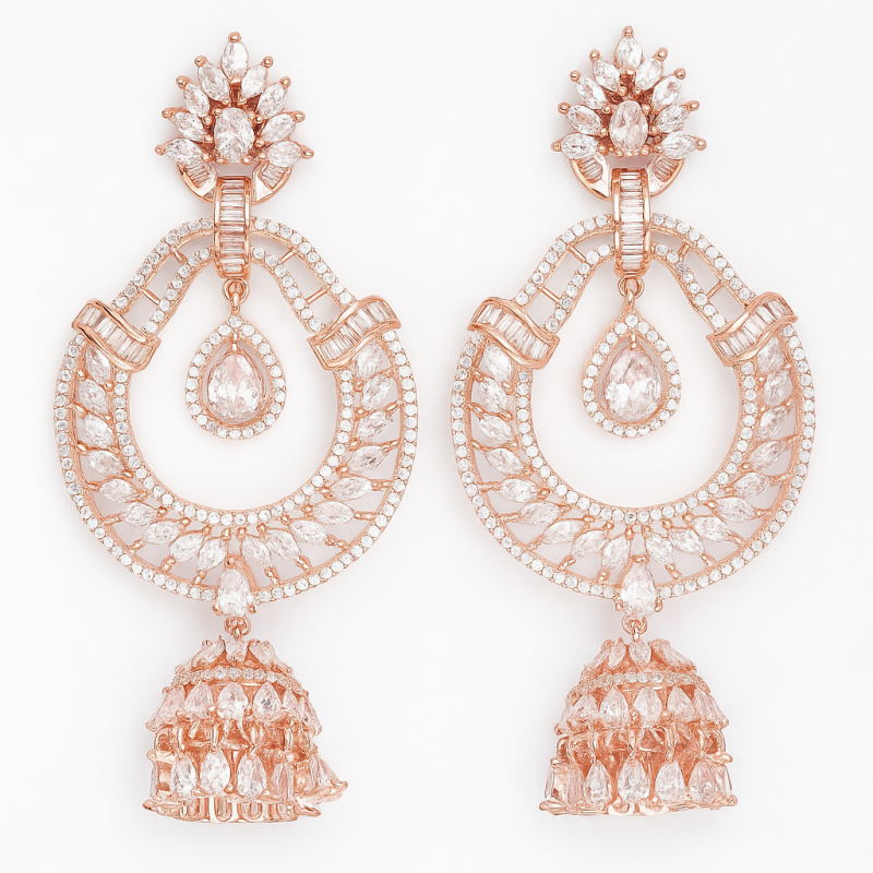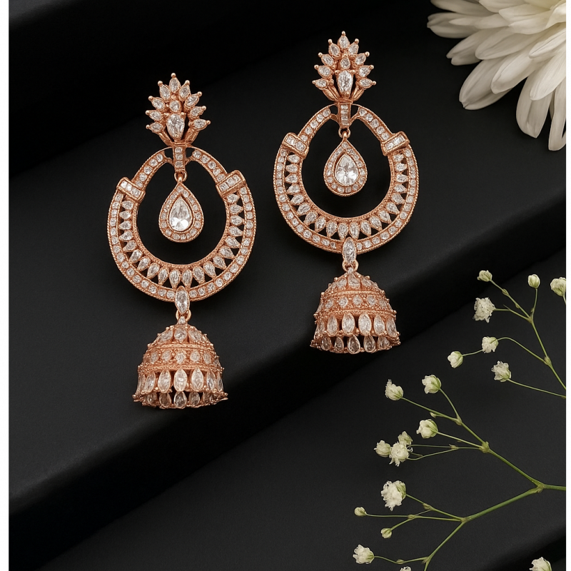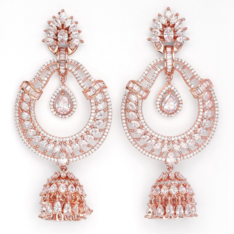 This Earrings made of brass metal with rose gold finished, Crafted with a high-quality finish American diamond.
