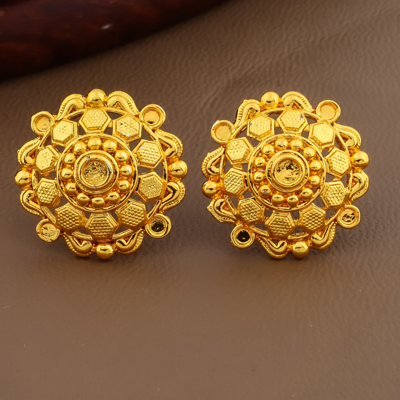 Enhance your jewellery collection with this elegant 4-pair traditional earrings combo set featuring beautifully crafted mandala circular studs, sunburst patterns, textured square studs, and temple-inspired ethnic designs. Each pair is finished with a rich antique gold polish, giving it a timeless traditional appeal. The combination of classic studs and statement ethnic designs makes this set perfect for pairing with sarees, kurtis, lehengas, and festive outfits. Lightweight and stylish, these earrings are ideal for daily ethnic wear, festive occasions, and special celebrations.