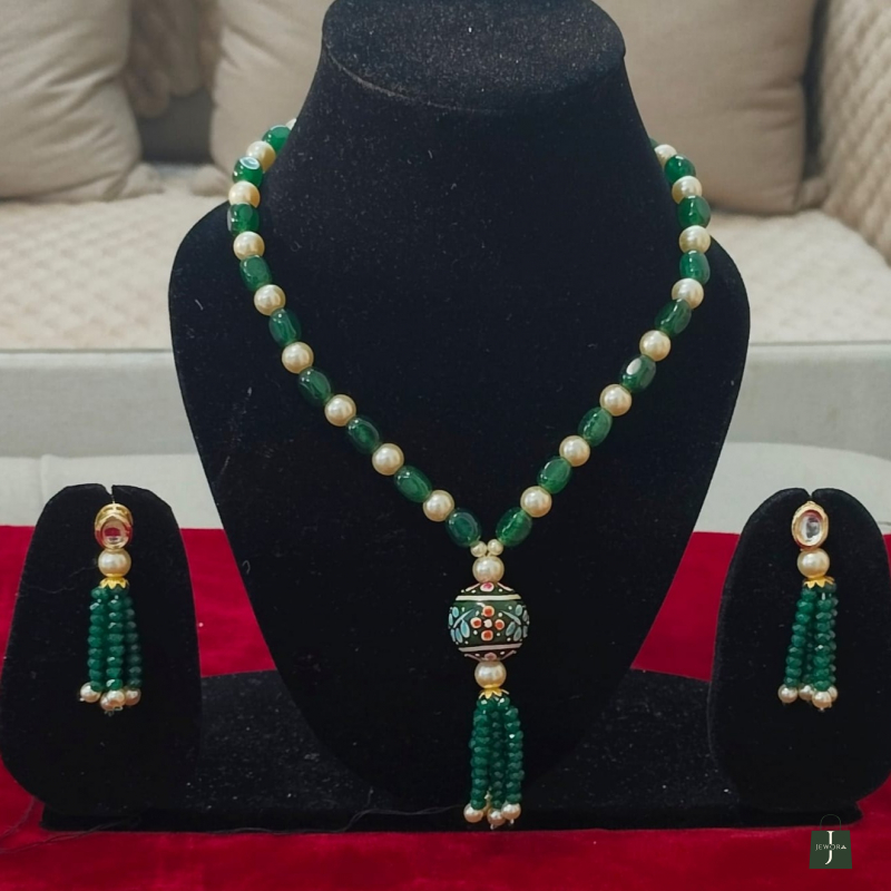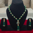 This is a traditional statement necklace set featuring a coordinated necklace and matching long earrings, designed in a classic ethnic style.