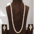 Each stone is delicately set in a gold-plated frame, creating a continuous shimmering pattern that sits gracefully around the neckline. The set is paired with matching floral-pattern stud earrings, making it perfect for weddings, festive occasions, parties, and elegant traditional wear.