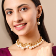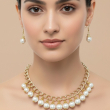 The necklace comes with an adjustable lobster clasp closure for comfortable fitting and ease of wear. Paired with matching pearl drop earrings, this set is ideal for weddings, festive occasions, parties, and special celebrations. Lightweight yet eye-catching, this necklace set enhances sarees, lehengas, gowns, and even Indo-western dresses effortlessly.