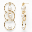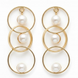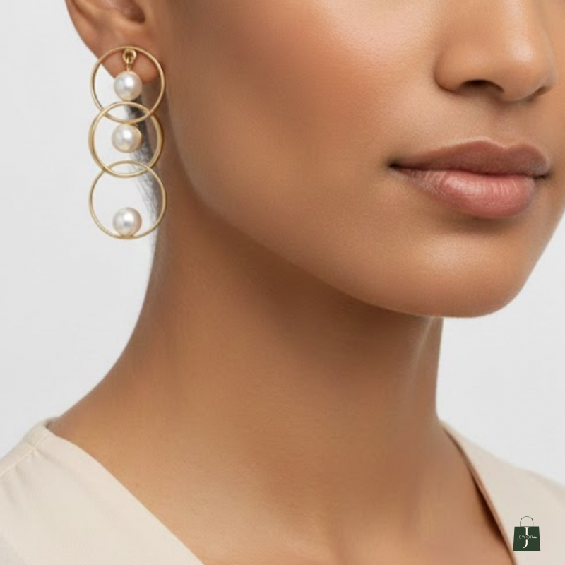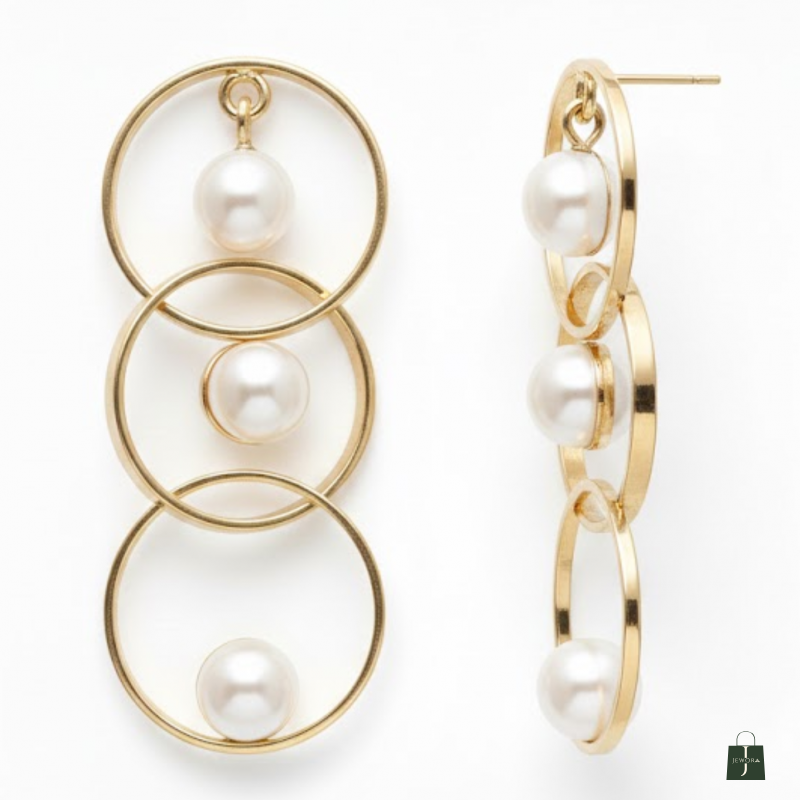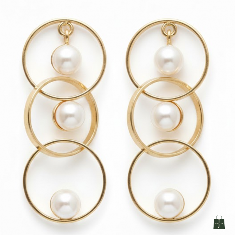 A timeless pair of earrings featuring triple golden hoops with floating pearl charms. Elegant, classy, and perfect for elevating any look effortlessly.