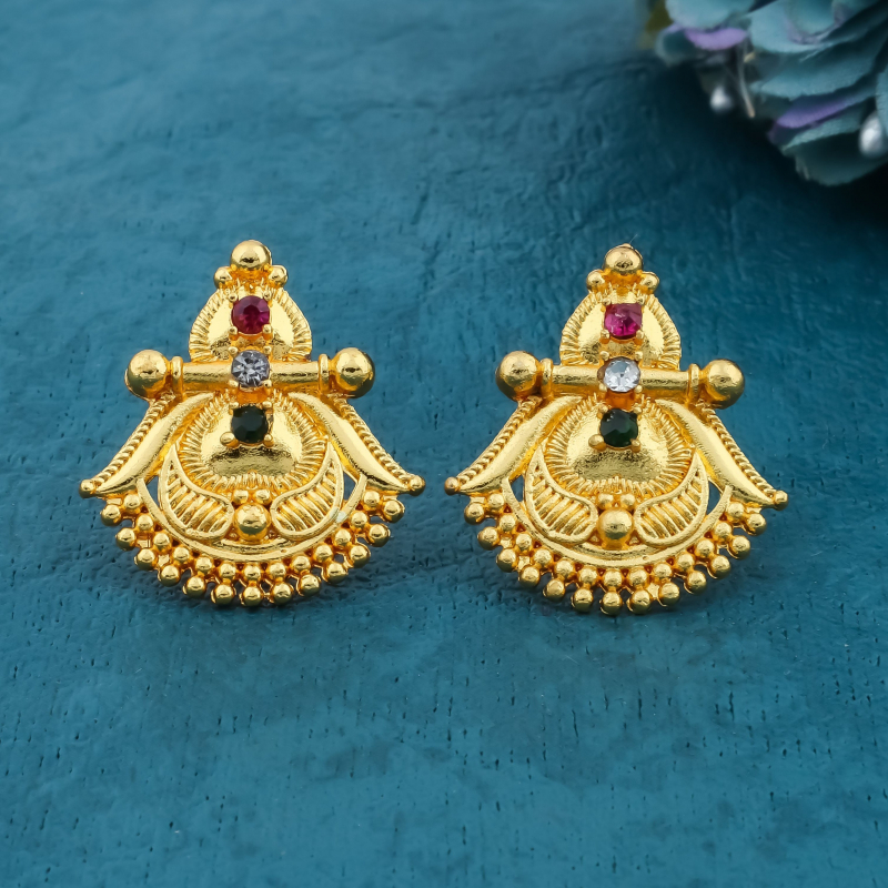 Upgrade your jewellery collection with this Royal Temple Gold Earring Combo Set, featuring six beautifully designed pairs inspired by traditional Indian temple jewellery. Each pair showcases intricate gold beadwork, elegant motifs, and sparkling colored stones, giving a luxurious ethnic appeal.