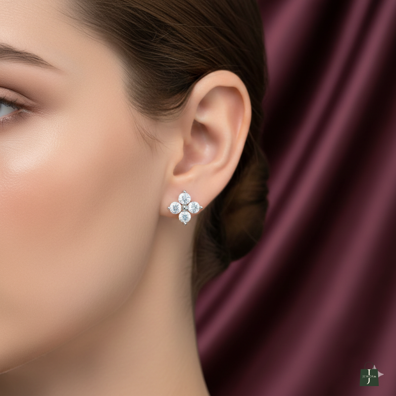 Maximized Sparkle: Utilizes a four-stone cluster of brilliant round-cut stones to create a dense, highly reflective surface.