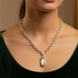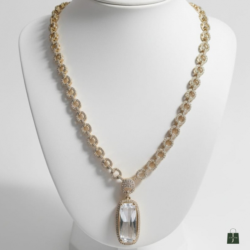 Elevate your style with this sophisticated jewelry set designed for modern elegance. The set includes a bold link-chain necklace paired with matching drop earrings, each showcasing a beautifully cut rectangular clear stone framed with sparkling accents. The polished finish and refined craftsmanship make this set perfect for weddings, parties, formal events, or special occasions.