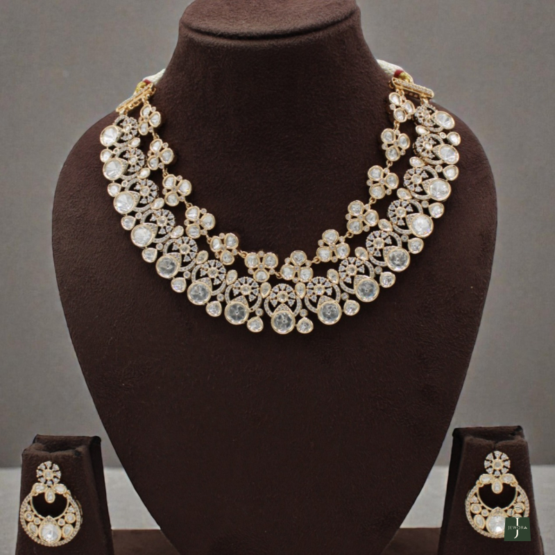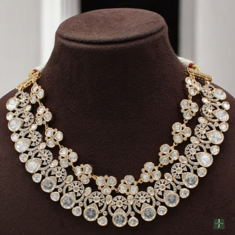 Perfect for bridal wear, receptions, and grand festive occasions, this set blends timeless charm with sophisticated brilliance.