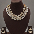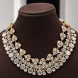 This stunning necklace set showcases a delicate floral-inspired design crafted with sparkling white stones set in a radiant gold finish. The necklace features a symmetrical arrangement of round, pear, and marquise-shaped stones forming elegant flower and vine motifs.