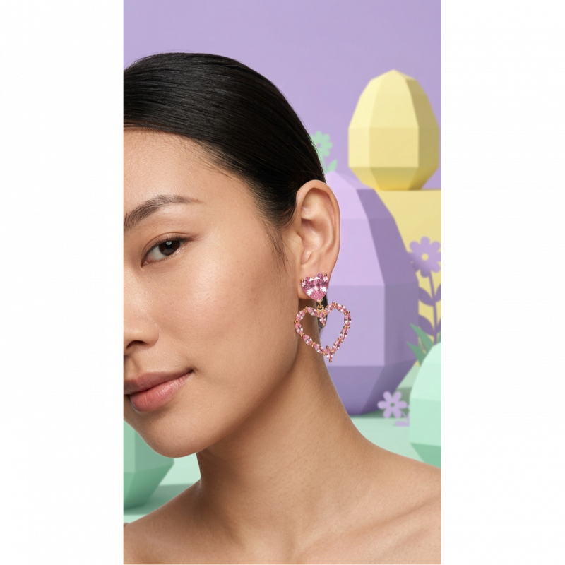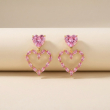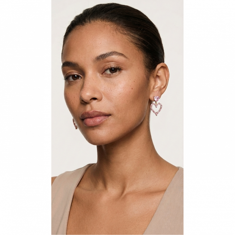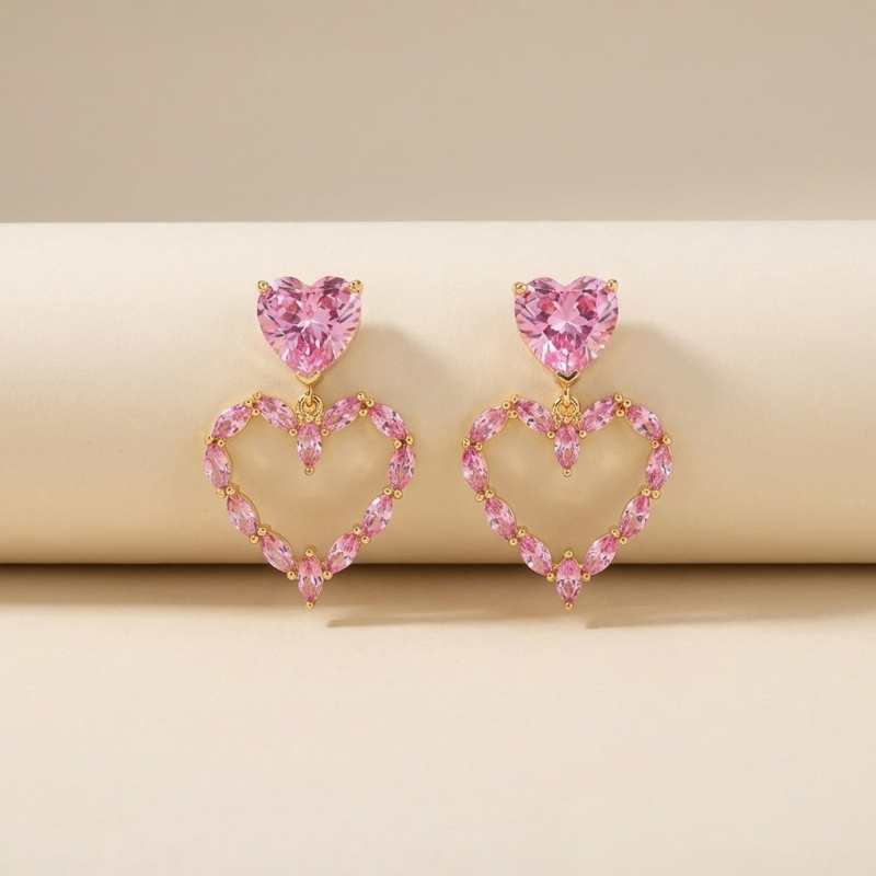 Embrace a look of timeless romance with our [Crystal Heart Dangle Earrings With Pink Stone Studs For Women]. These stunning drop earrings are meticulously crafted to capture the light from every angle. Each piece features a vibrant, heart-cut pink crystal stud that anchors a larger, open-heart silhouette. The lower pendant is intricately set with a series of shimmering marquise-cut stones, creating a petal-like texture that feels both modern and classically feminine.