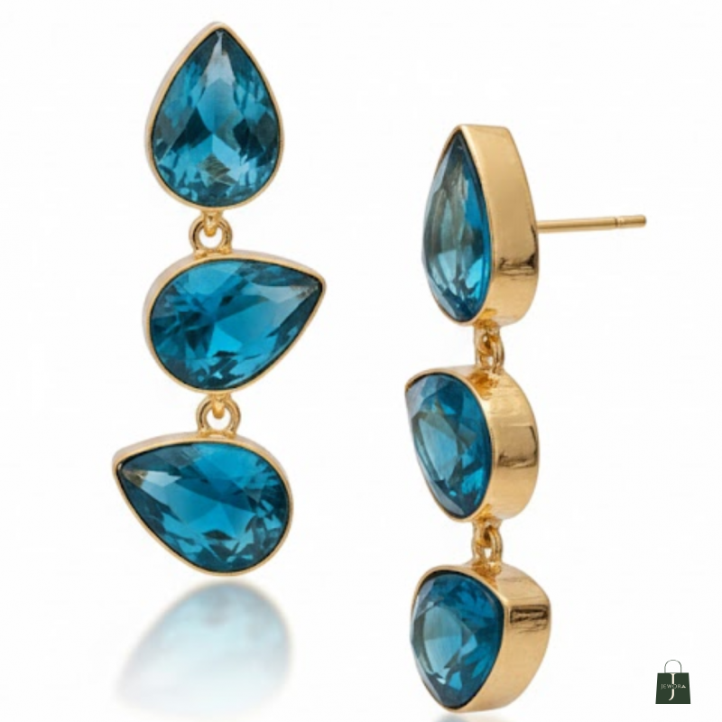 Elegant triple-drop crystal earrings designed to shine with every move. Lightweight, vibrant, and perfect for women who love timeless sparkle in bold colours.