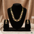 Shine with sophistication in the Elegant Rose Motif CZ Stone Necklace Set. Featuring delicate rose-shaped pendants adorned with sparkling cubic zirconia stones, this gold-plated set is perfect for parties, receptions, and formal occasions. The matching long drop earrings complete the graceful and luxurious look.