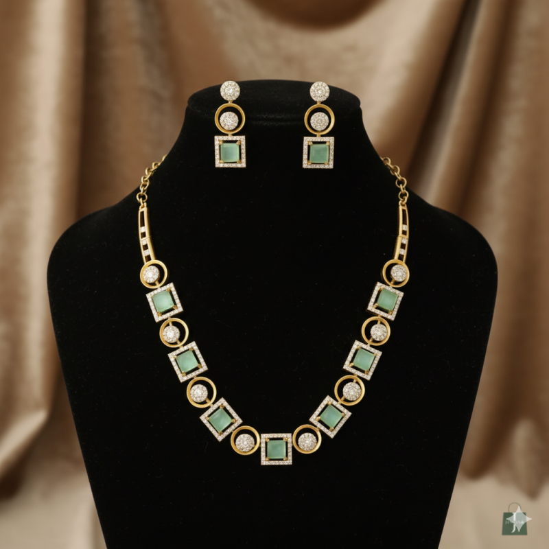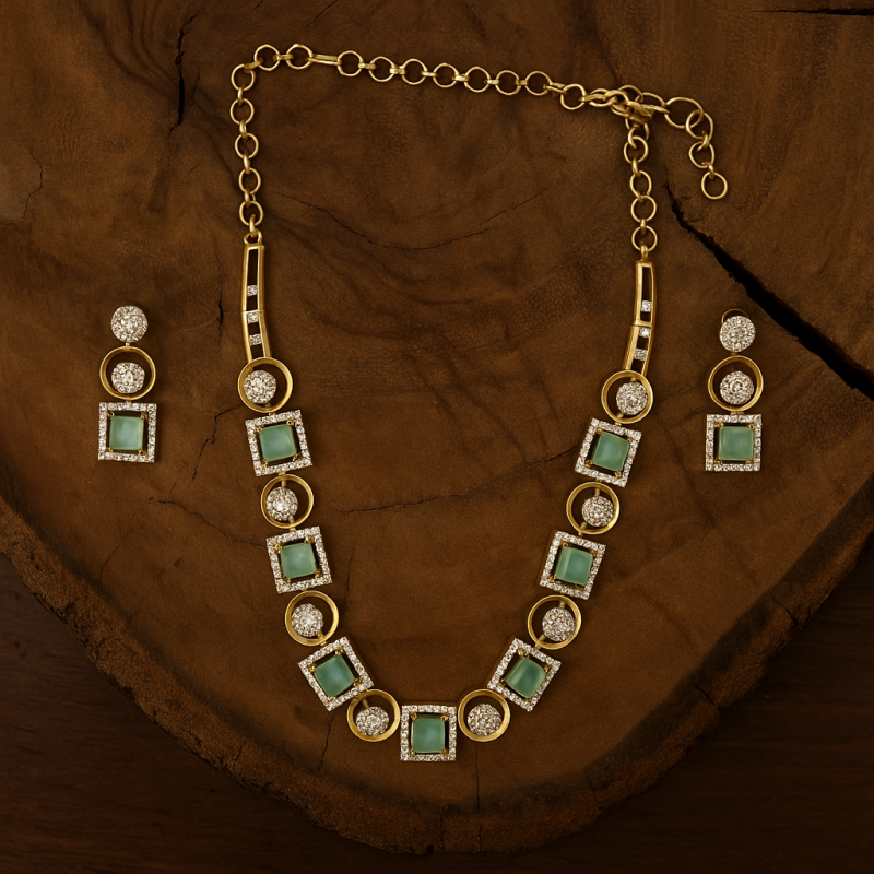Shine with sophistication in the Elegant Rose Motif CZ Stone Necklace Set. Featuring delicate rose-shaped pendants adorned with sparkling cubic zirconia stones, this gold-plated set is perfect for parties, receptions, and formal occasions. The matching long drop earrings complete the graceful and luxurious look.
