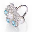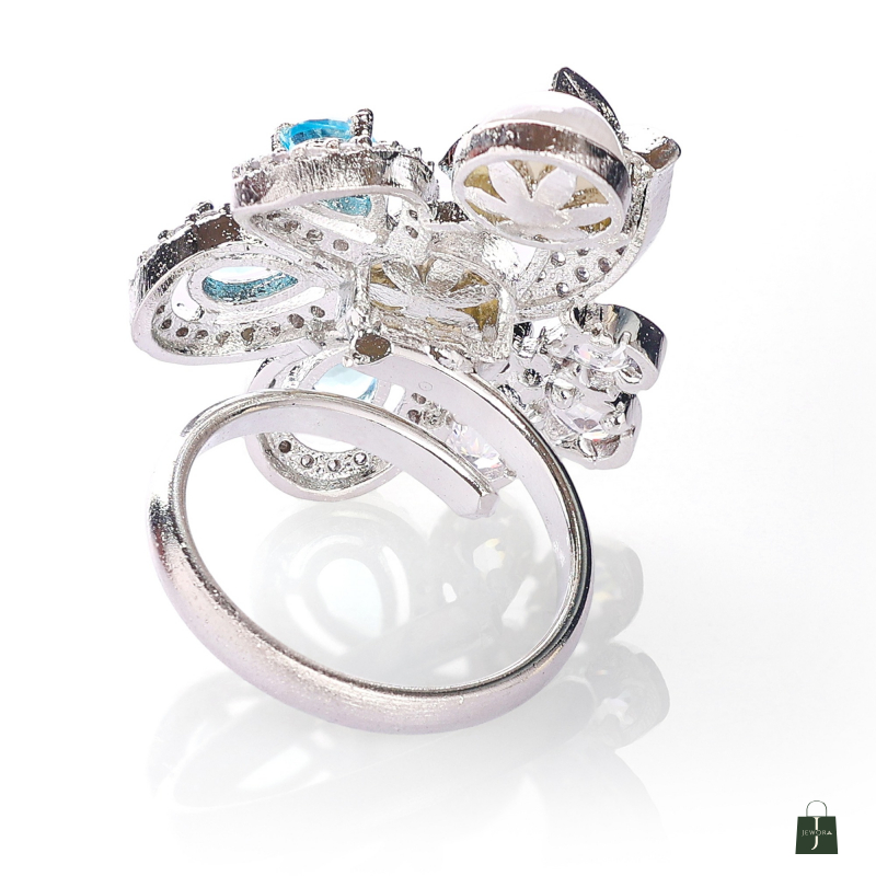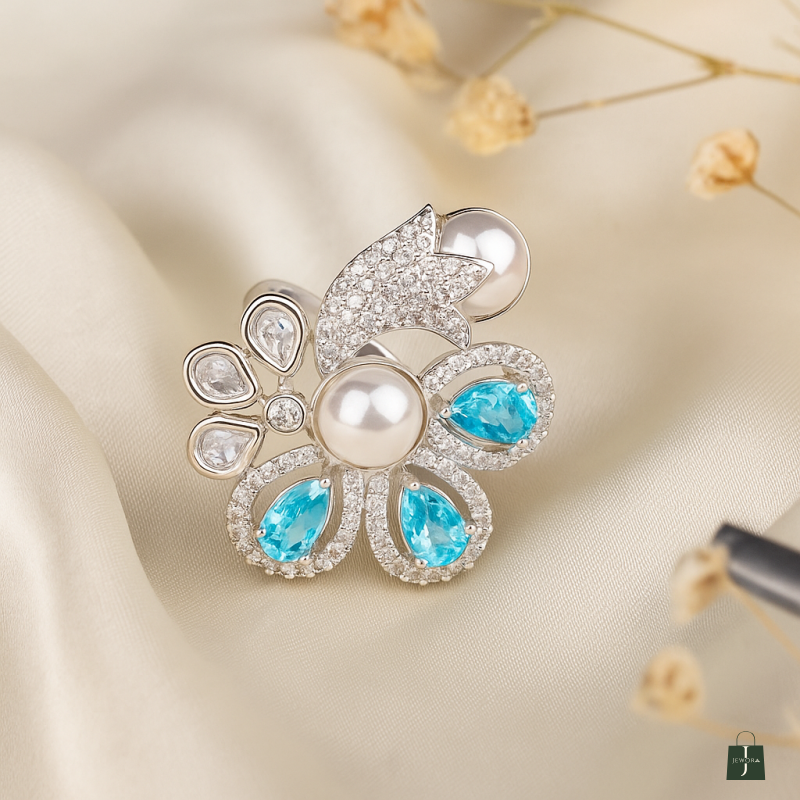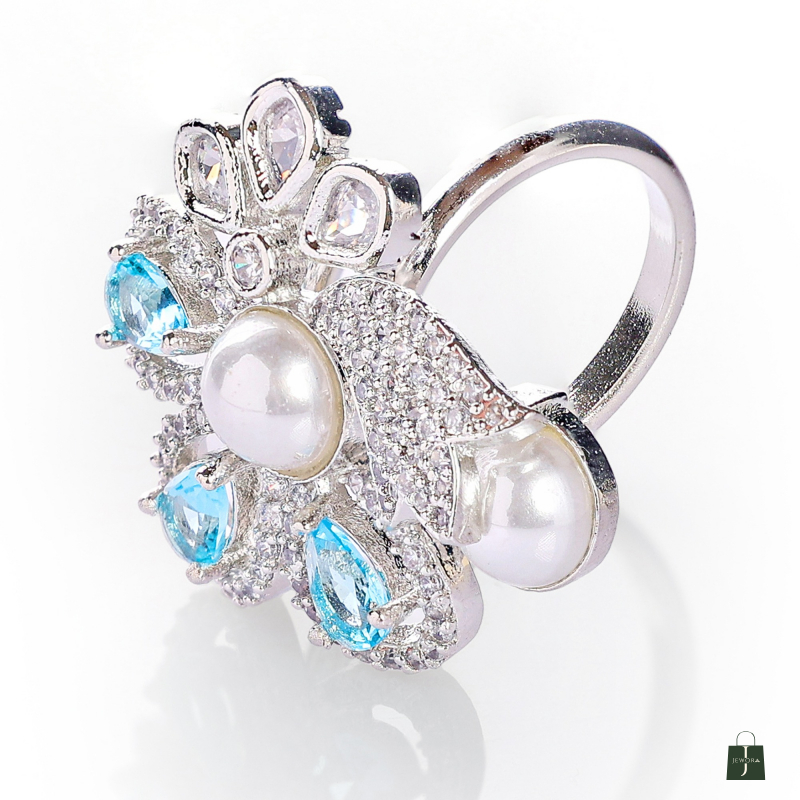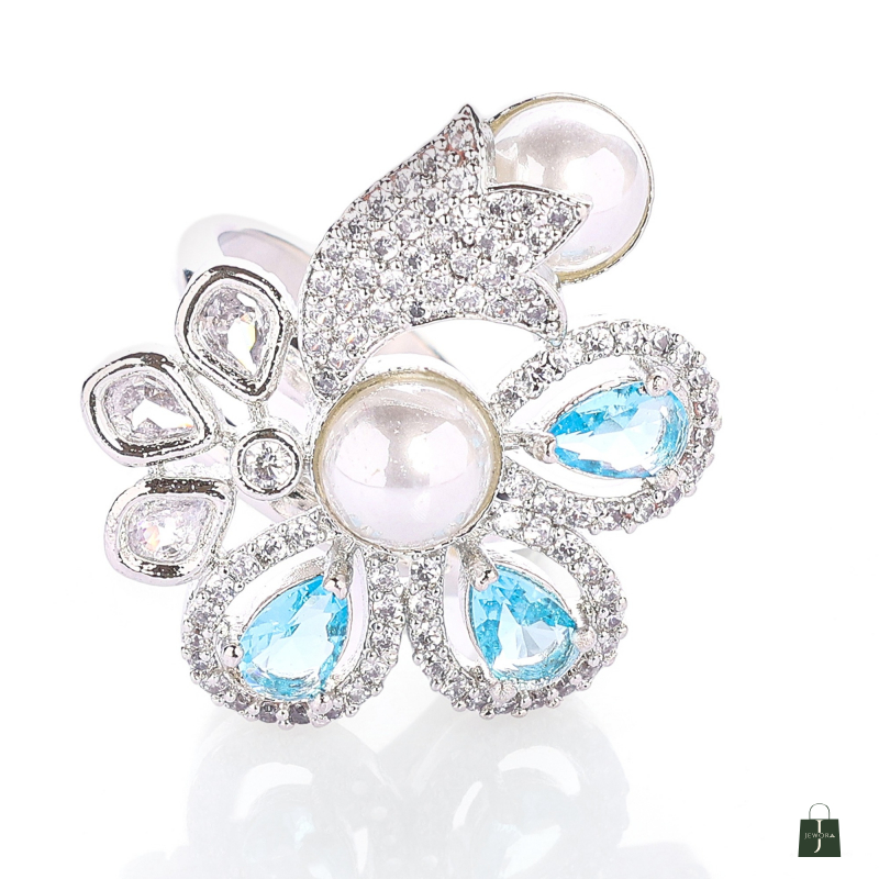 This Ring made of alloy metal with rhodium plated , Crafted with a high-quality finish Cubic Zirconia Stone with pearl & Monalisa Stone