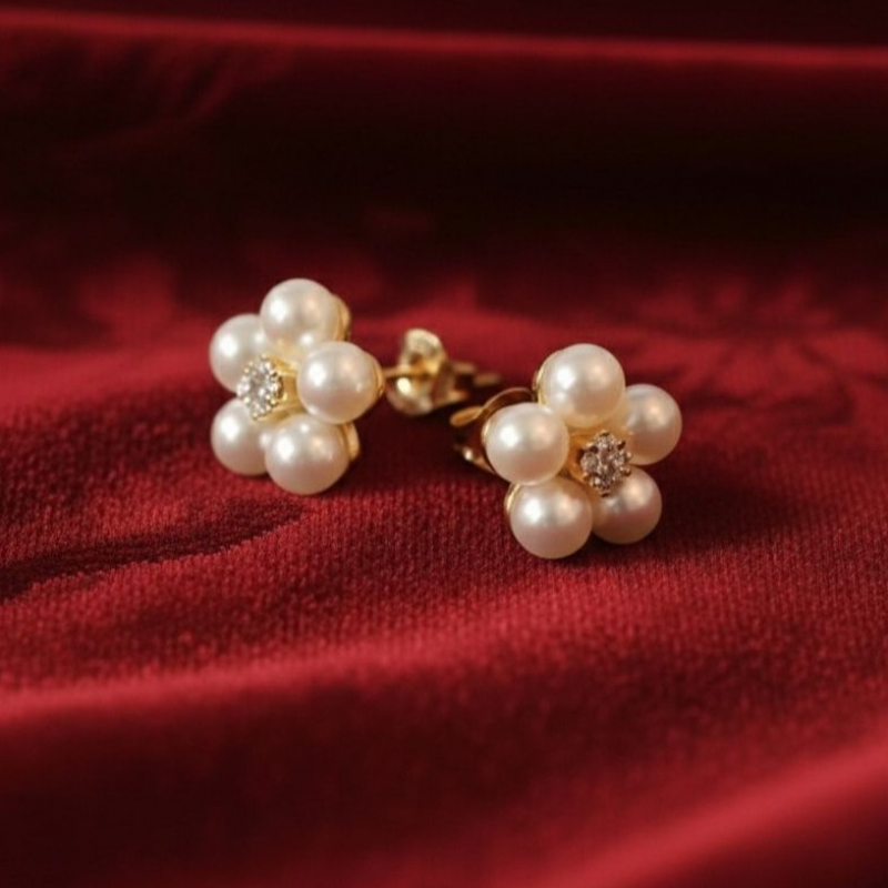 Add a touch of charm and elegance to your jewelry collection with these Dainty Pearl Flower Stud Earrings. Designed with a beautiful five-petal floral motif crafted from lustrous faux pearls and sparkling rhinestones, these earrings offer the perfect blend of sophistication and sweetness. The gold-tone detailing gives the studs a vintage yet timeless appeal that complements a wide range of outfits.
