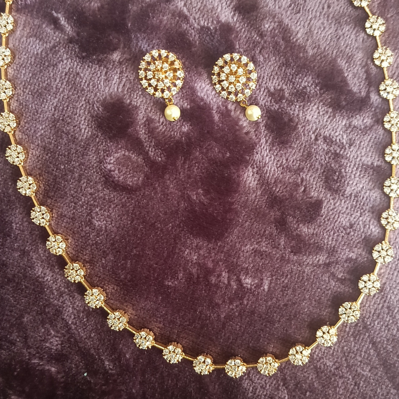 This Floral Pattern necklace set with Cute Earrings is a Must Buy for the Minimal Lovers Who love to be noticed With Minimal Jewellery.This Premium Quality Trendy AD CZ Neckse guarantees Diamond Look Which can Attract People of all ages at the best Market price