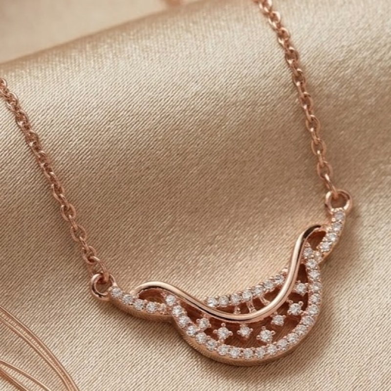 Elegant CZ Designer pendant necklace with beautiful rose gold polish and sparkling stones. Delicate and stylish design, perfect for daily wear and special occasions.