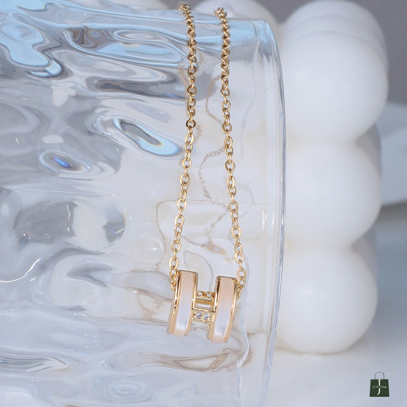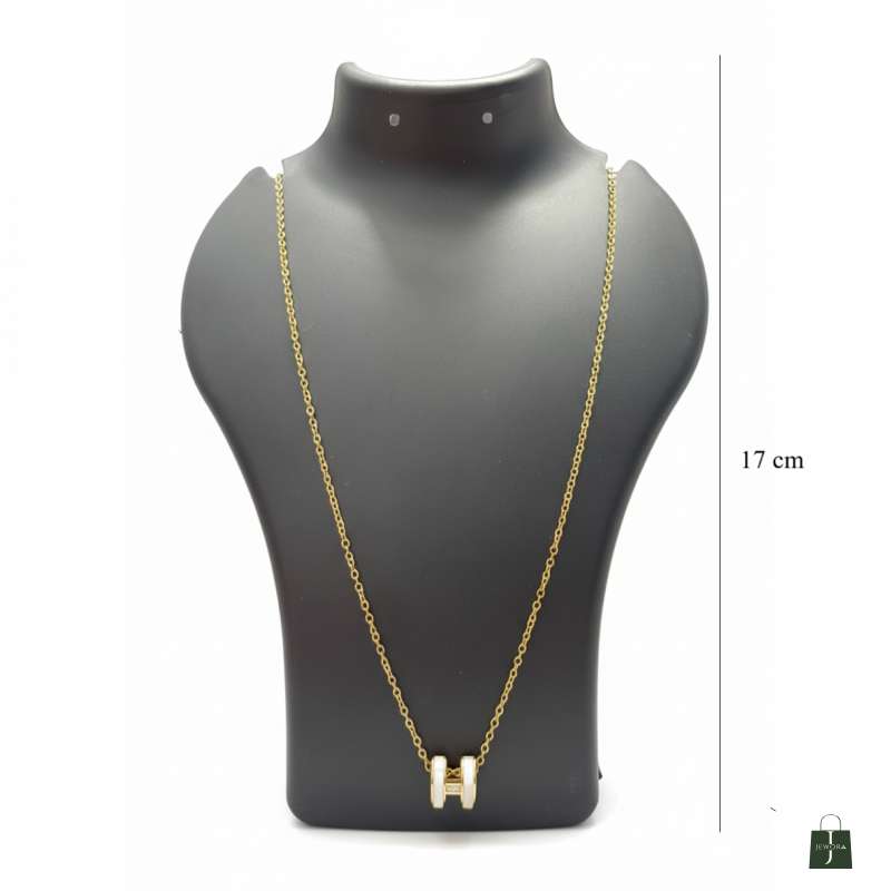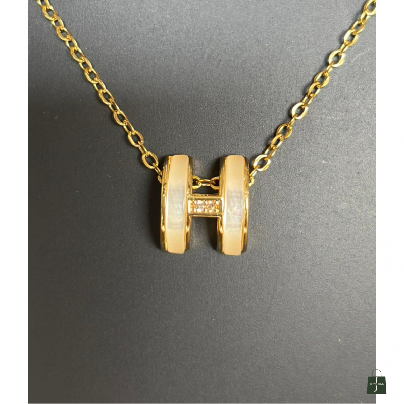 The pendant features the iconic H design crafted with meticulous attention to detail, suspended from a lustrous gold-plated chain that adds a touch of luxury to any ensemble. The pendant's balanced proportions and classic design make it a versatile accessory suitable for both casual and formal occasions. The gold-plated finish offers a rich, warm lustre that catches the light beautifully, while the chain's secure clasp ensures comfortable wear. This necklace serves as a perfect statement piece that can be layered with other necklaces or worn alone for a refined look. Whether paired with business attire or evening wear, this designer necklace adds a touch of prestigious style to your jewellery collection. The necklace comes presented in a manner befitting its elegant design, making it an ideal choice for those who appreciate luxury fashion accessories.