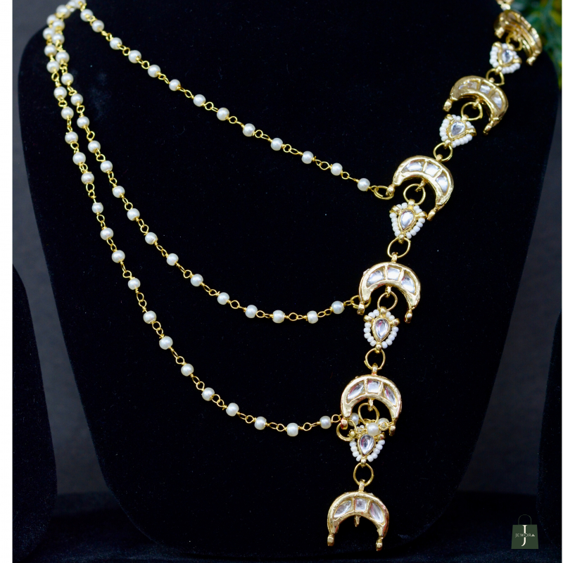 Crafted with designer-inspired detailing, this pearl chain Kundan pendant set blends classic elegance with modern refinement. The luminous stones and delicate pearl accents create a high-end look, ideal for festive occasions and elegant gifting at a value-driven price.