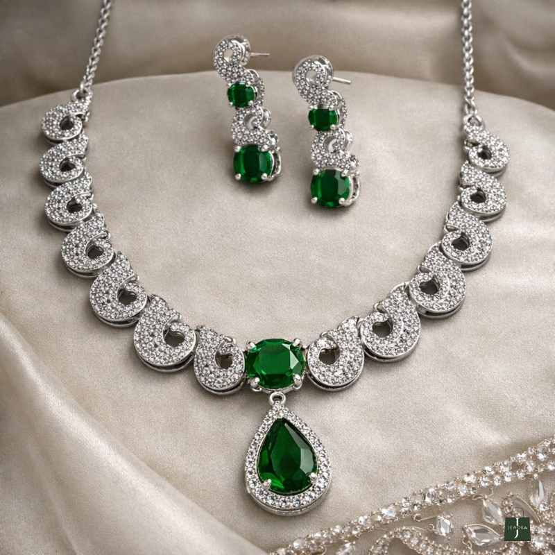 A sparkling silver-tone necklace adorned with shimmering bio zirconia stones