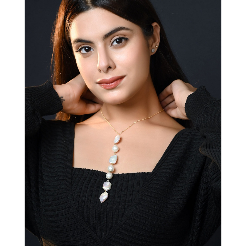 Each freshwater pearl necklace is meticulously handcrafted with premium anti-tarnish jewellery components, ensuring lasting shine and durability. The natural iridescence of uneven shaped pearls captures the light beautifully, symbolizing purity, wisdom, and serenity.