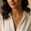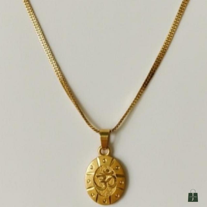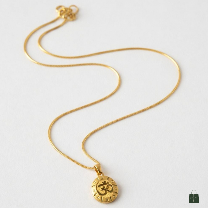 Embrace spiritual grace and minimalist luxury with this beautifully crafted Om pendant necklace. Featuring a finely detailed circular medallion engraved with the sacred "Om” symbol, this piece represents harmony, strength, and positive energy.