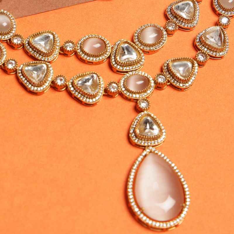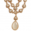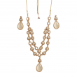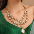 Add timeless elegance to your jewellery collection with this beautifully crafted layered Kundan necklace set. Featuring a double-layer design adorned with shimmering Kundan stones and soft pearl accents, this set is highlighted by a graceful teardrop pendant. The intricate detailing and classic gold finish make it a perfect blend of tradition and sophistication. Paired with matching drop earrings, this set is ideal for weddings, festive occasions, and special celebrations.