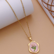 Bring a soft, elegant charm to your everyday style with this beautifully crafted oval floral pendant necklace. Designed with a delicate gold-tone chain, this necklace features a graceful oval pendant highlighted by a blush pink enamel background that adds a gentle and feminine touch. At the center, a minimal floral motif with green leaf detailing is paired with a pearl-style accent, creating a refined and artistic look.