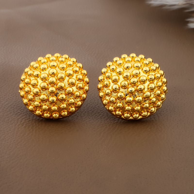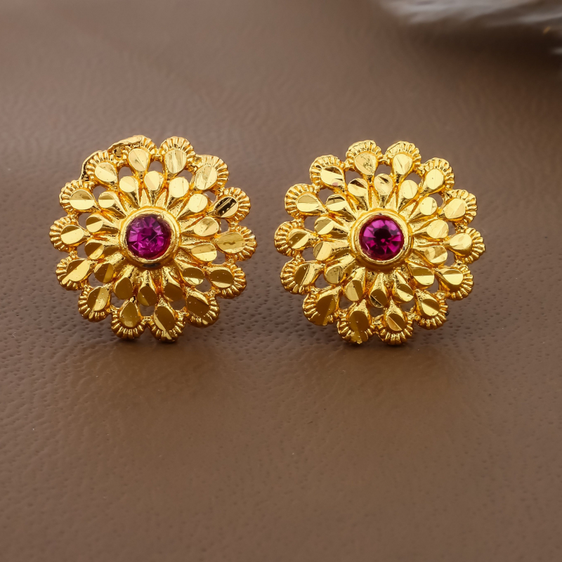 Enhance your jewellery collection with this elegant combo of two pairs of gold-polish stud earrings featuring classic ethnic designs. One pair showcases a beautifully textured dome stud with detailed bead work, offering a bold and traditional look. The second pair features a delicate floral design with a vibrant pink center stone that adds a touch of elegance and sparkle. Crafted with a rich gold finish and fine detailing, these earrings are lightweight, comfortable, and perfect for festive occasions, parties, and everyday ethnic styling.