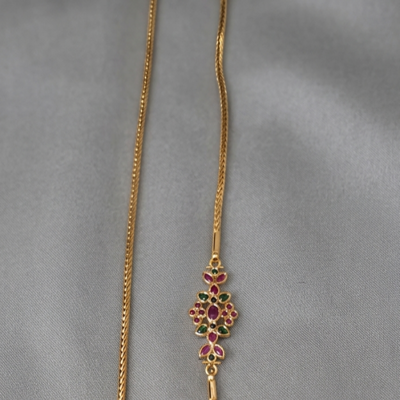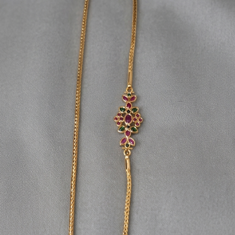 Elegant Floral Stone Gold Chain Necklace