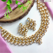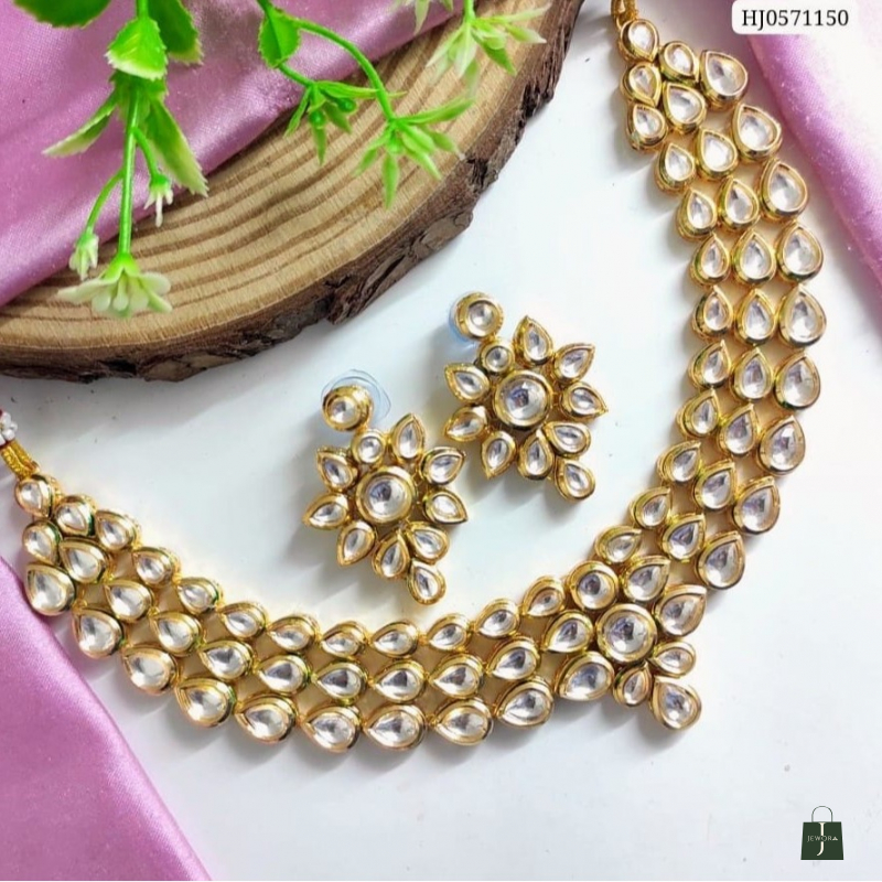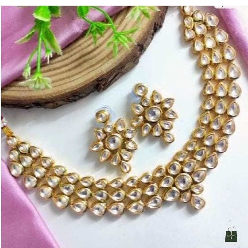 Enhance your ethnic look with this beautiful gold-plated Kundan necklace set, designed with premium teardrop-shaped stones and a floral pattern finish. This traditional jewellery set comes with perfectly matching earrings, making it an ideal choice for weddings, bridal wear, festive occasions, parties, and cultural functions.