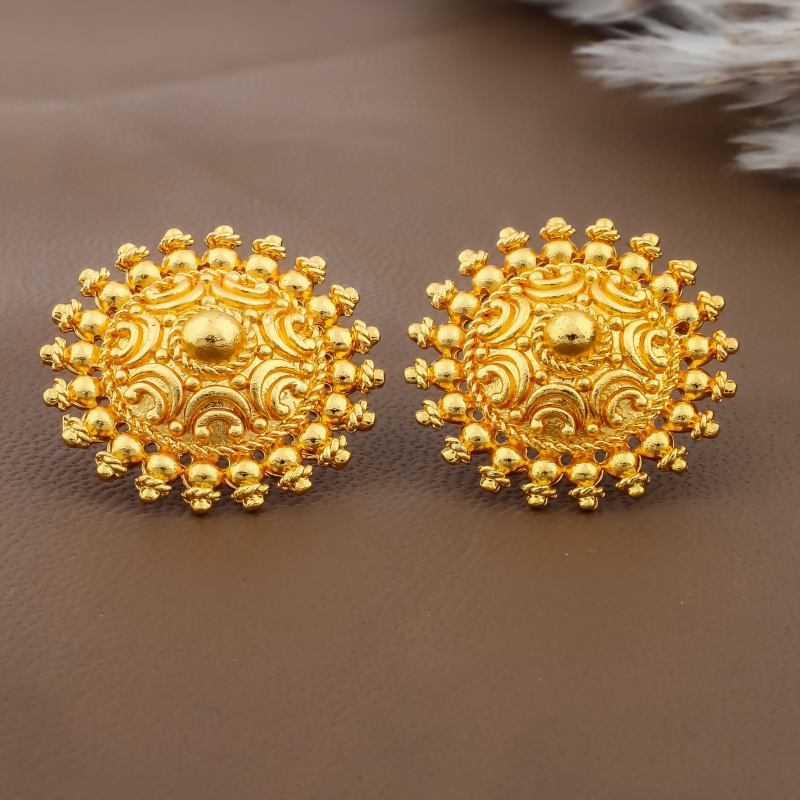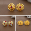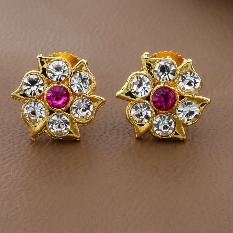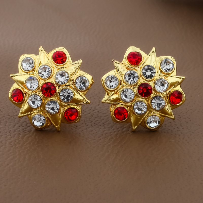 Add elegance and sparkle to your jewellery collection with this beautiful combo of three pairs of gold-polish stud earrings. The set features a floral design with a pink center stone, a star-inspired stud embellished with red and white crystals, and a classic antique textured stud with intricate detailing. The rich gold finish and sparkling stones give these earrings a stylish ethnic look, making them perfect for festive occasions, parties, weddings, and everyday wear.