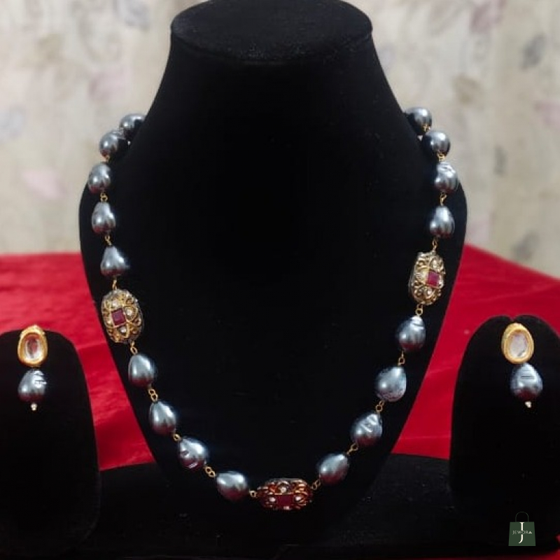 This is a traditional red beaded jewellery set with a strong ethnic and handcrafted appeal.