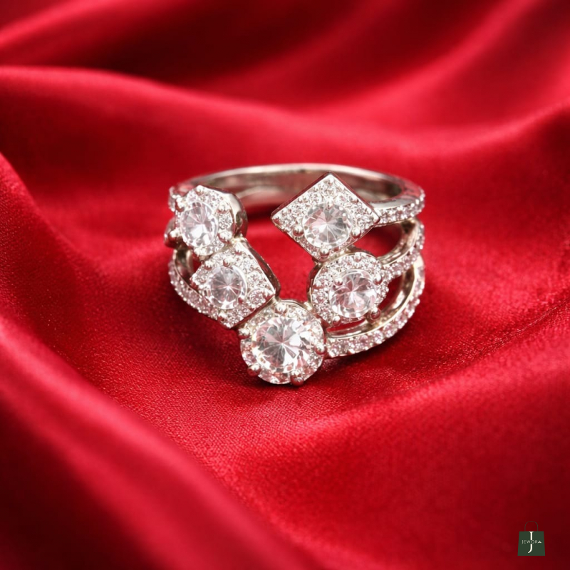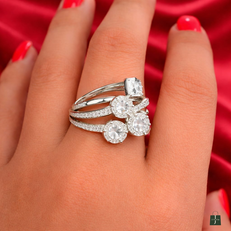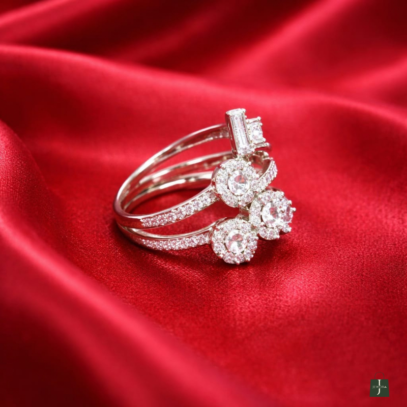 Make every gesture shine with this stunning multi-stone zircon ring crafted in premium silver polish finish. Featuring a beautiful arrangement of round and baguette-cut zircons with delicate micro-stone detailing, this piece is designed to add instant glamour to your look.
