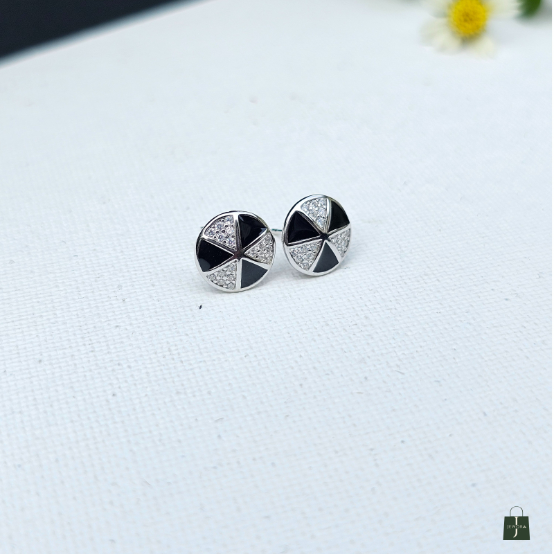 A perfect blend of classic black enamel and shimmering CZ stones, these studs define modern minimalism. Lightweight yet classy, ideal for both daily wear and party looks.