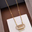 Add a touch of refined elegance to your jewelry collection with this beautifully crafted gold-tone necklace featuring a sophisticated oval pendant design. The open-frame pendant is delicately embellished with sparkling crystal stones along the border, giving it a graceful shimmer that catches the light from every angle. Inside the oval frame, subtle gold rings create a layered effect, while the lower edge is finished with dainty pearl drops that add a soft and feminine charm.