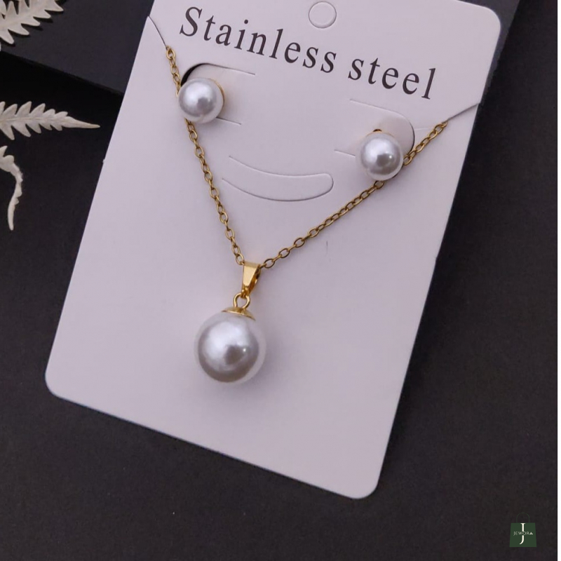 Perfect as a gift for birthdays, anniversaries, weddings, or festive occasions, this pearl set is a thoughtful choice for women who appreciate classic and elegant jewelry. Wear it alone for a subtle statement or layer it with other pieces for a modern touch. Simple, graceful, and timeless, this stainless steel pearl set is a must-have addition to any jewelry collection.