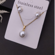 Elevate your everyday style with this elegant stainless steel pearl necklace and stud earring set. Designed for timeless beauty, this set features a classic white pearl pendant suspended from a sleek gold-tone chain, perfectly paired with matching pearl stud earrings. The simple yet sophisticated design makes it a versatile accessory that complements both casual and formal outfits.