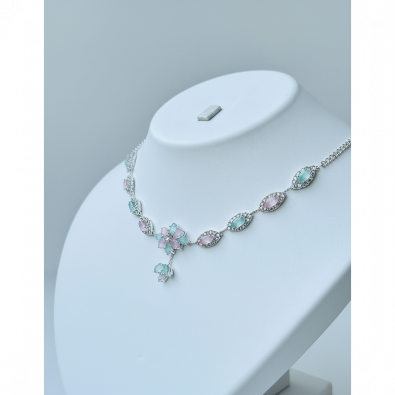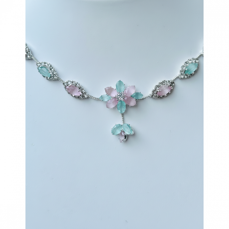 Elegant Pink and Green Stone Necklace and Earrings Set.