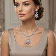 Elevate your look with this stunning Elegant Pink Stone Pendant Necklace and Earrings Set, crafted to perfection for the modern woman who appreciates timeless glamour. The set features a beautifully designed silver-tone necklace adorned with sparkling crystals arranged in a graceful leaf-like pattern, leading down to a magnificent rectangular pink stone pendant framed by dazzling crystal embellishments. The matching drop earrings mirror the pendant's design, showcasing the same captivating pink stone surrounded by intricate crystal detailing, creating a perfectly coordinated ensemble. Ideal for bridal occasions, receptions, festive celebrations, and formal events, this jewellery set adds an air of sophistication and elegance to any outfit. Whether paired with a bridal lehenga, an evening gown, or a saree, this set is sure to make you the centre of attention. A thoughtful gift choice for weddings, anniversaries, and special occasions. Please handle with care and store in a jewellery box to maintain its lustre.