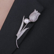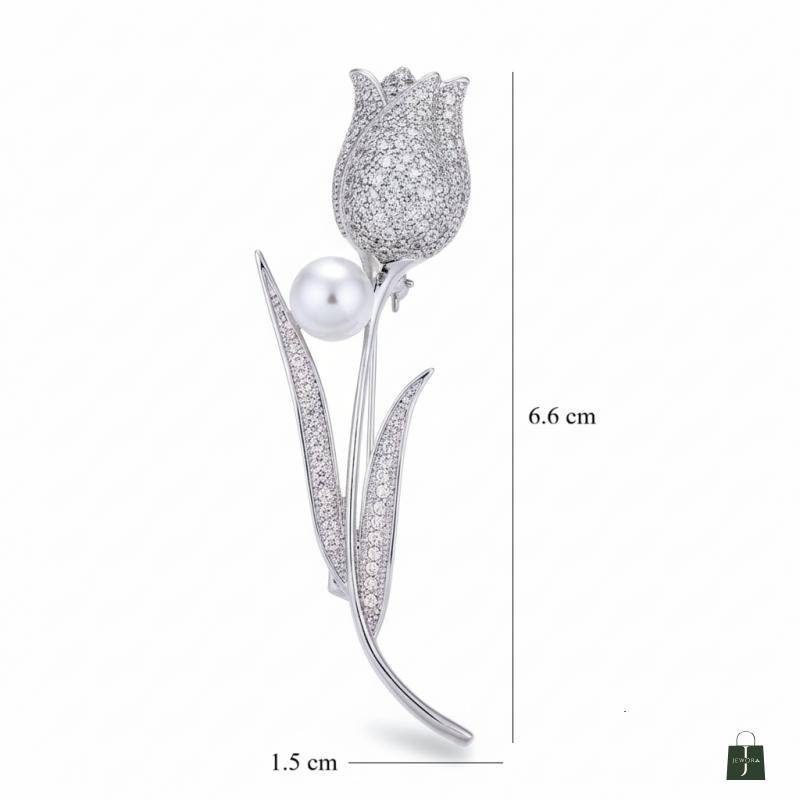 PREMIUM DESIGN: Exquisite tulip-shaped brooch crafted with sparkling crystal rhinestones and a lustrous pearl accent in elegant silver finish