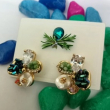 Elevate your look with these luxurious floral statement stud earrings, designed with a beautiful blend of sparkle and elegance. Featuring a brilliant round-cut clear crystal at the top, soft mint-green bead clusters, deep aurora blue faceted stones, and a luminous baroque pearl accent, these earrings create a rich and eye-catching combination.