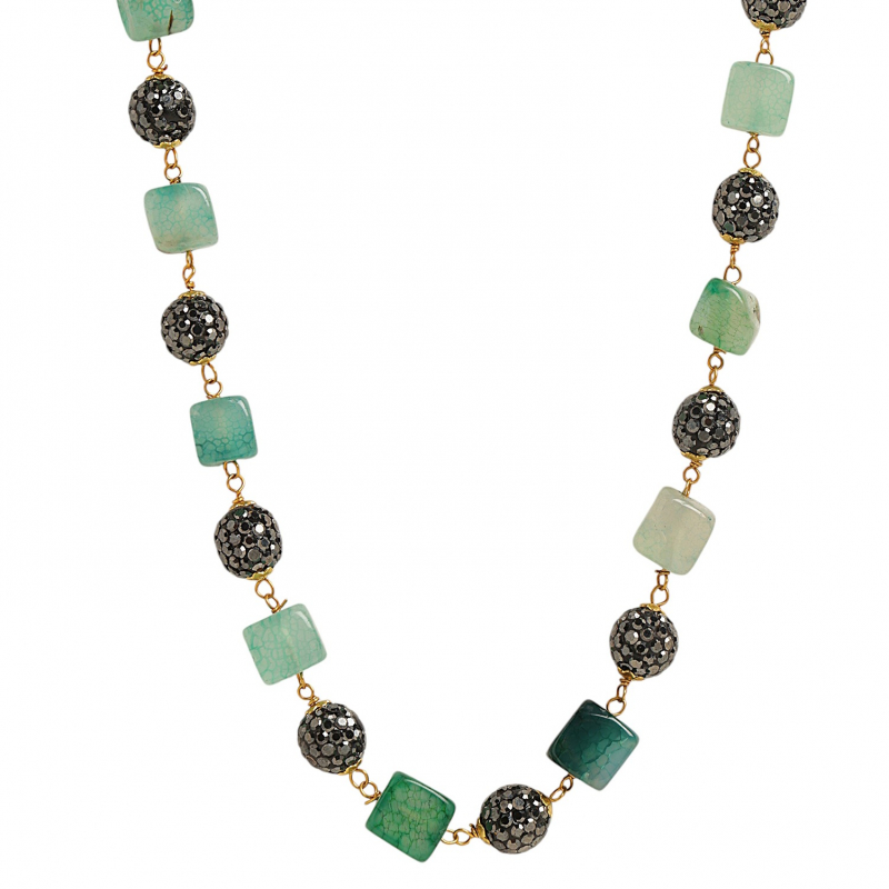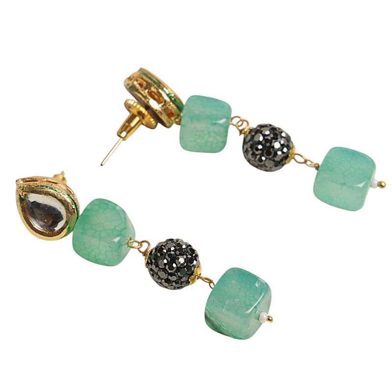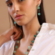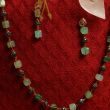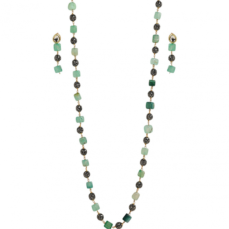 Add a touch of sophistication to your look with this elegant emerald beaded long necklace set. Featuring a beautiful combination of green stone beads and textured black crystal accents, this piece offers a rich and stylish appeal. The long layered design enhances its versatility, making it perfect for both ethnic and western outfits. Paired with matching drop earrings, this set is ideal for elevating your everyday and occasion wear with effortless grace.