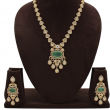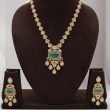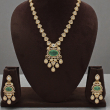 The graceful teardrop danglings enhance the charm of the pendant, creating a sophisticated yet royal appeal. Paired with matching drop earrings, this set is perfect for festive occasions, wedding functions, and party wear.