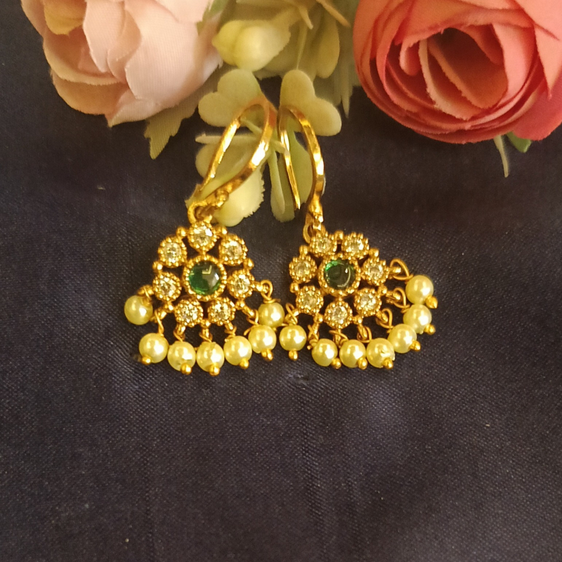 Elevate Your Festive look with this Designer CZ AD Necklace Set,crafted in a graceful Gold-Plated Finish and adorned with Sparkling White & Emerald Green American Diamond(CZ Stones) with Pearl Hangings. Paired with Easy wear Matching Earrings Complements any Outfit.It offers the brilliance of fine jewellery at Affordable Price