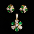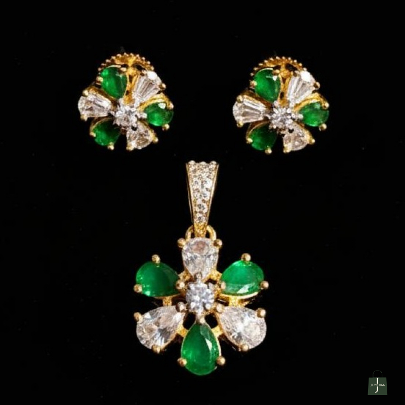 The set features a prominent six-petal pendant, complemented by two smaller matching floral accents. Whether it's for a festive occasion or a sophisticated evening look, this set adds a touch of royal charm to any ensemble.