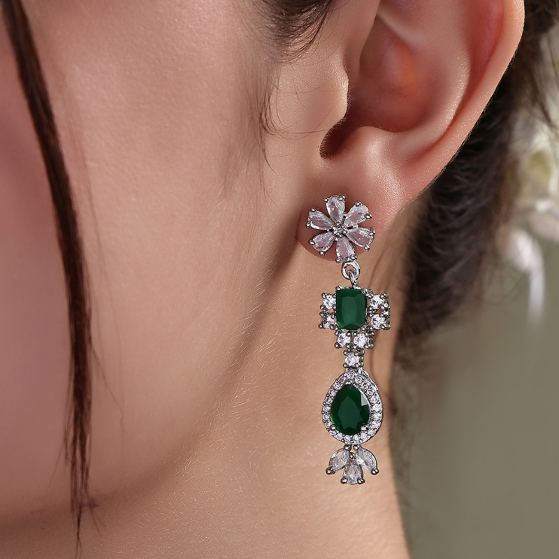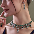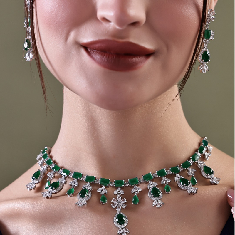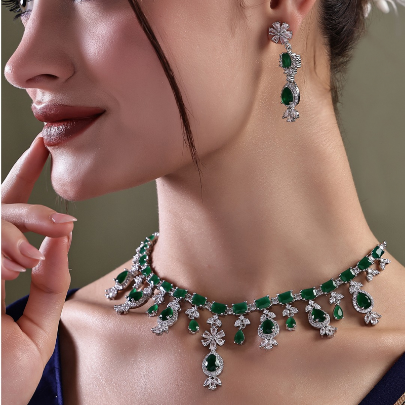Royal emerald green and white zircon necklace set that exudes elegance and modern sophistication — perfect for evening glamour or traditional events.